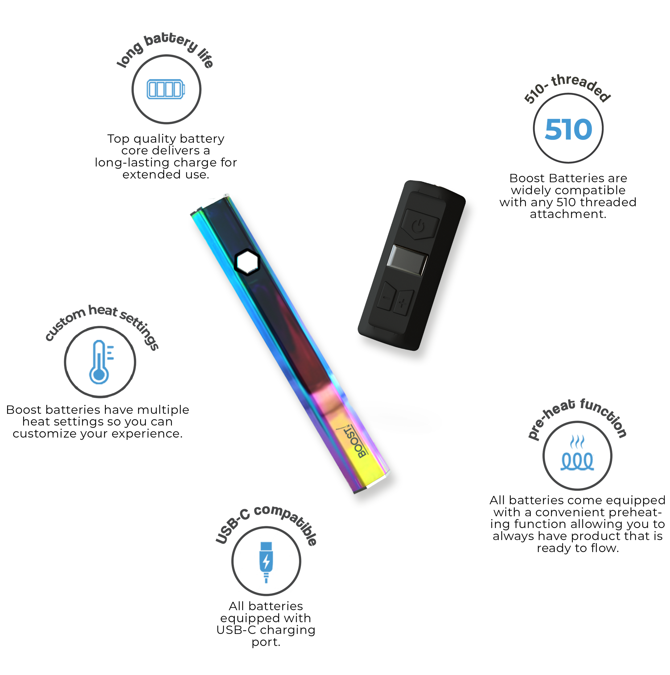 When you make a wholesale vape battery purchase from Boost! you can expect the following features: